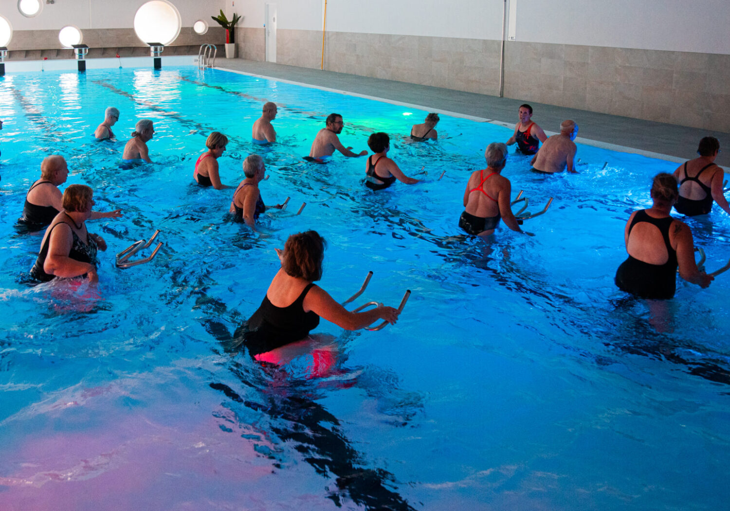 Consiste à pédaler sur un vélo semi-immergé avec un travail rythmique et ludique. C’est une pratique efficace pour muscler principalement le bas du corps tout en préservant ses articulations.