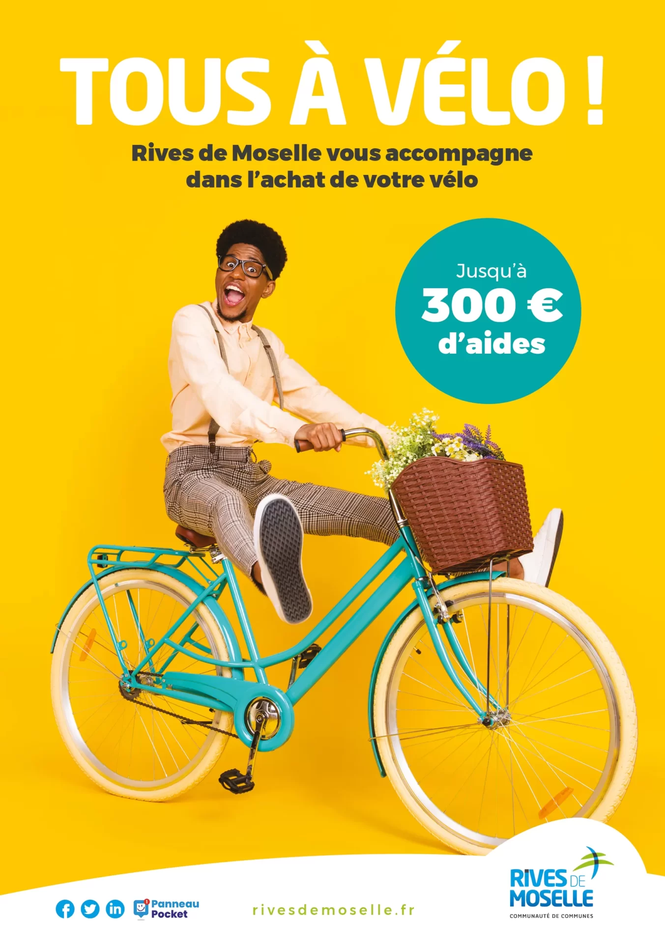 Pour les vélos de fabrication française: 20% du prix d’achat TTC du vélo plafonné à 300 euros sans conditions de ressources.