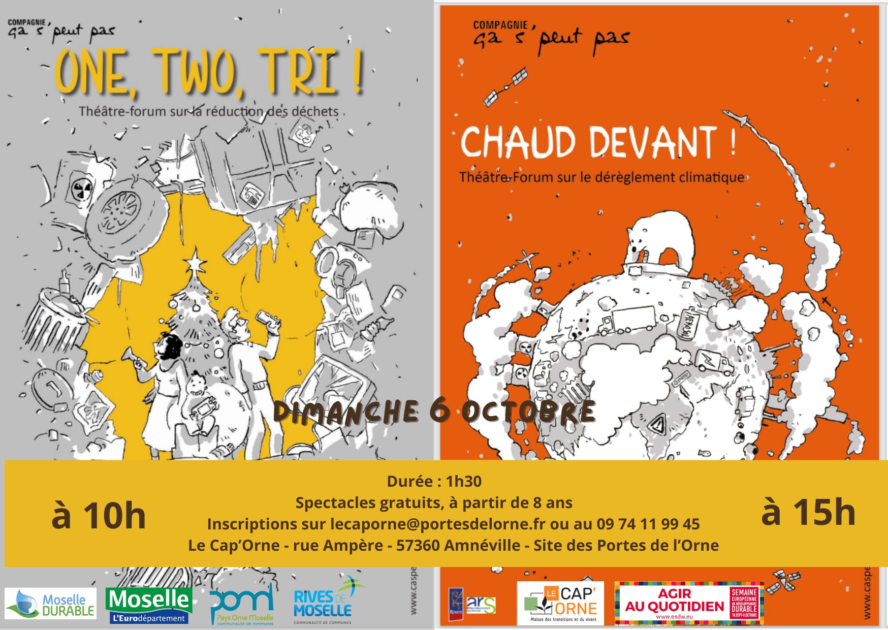 - Des spectacles sur la réduction des déchets et le dérèglement climatique – Dimanche 6 Octobre à 10h et 15h – Cap’Orne